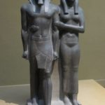 Unlike the ‘near east’, Egypt as a whole is easier to refer to as a singular entity. Egyptian art served the purpose of the mythological: much the same as the cultures of the ‘near east’ (this is my first example). However, their relationship with their divinity–while still stressed–was more personal. Much of their crafts served some ceremonial purpose that most citizens took part in. Most abundant of these crafts being the assortment of funeral ornamentation. Being that divinity and all things spiritual were so interwoven with the Egyptian sense of self: artists were focused more on the abstract–the idea of things (Hard stone group statue of Ramses II with Osiris, Isis, and Horus ).